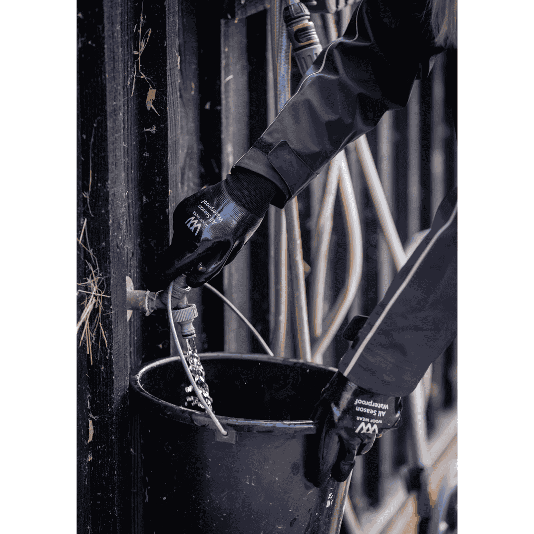 Waterproof year‑round glove in black with secure grip in wet and dry. Durable, flexible and comfortable for all stable and field tasks.