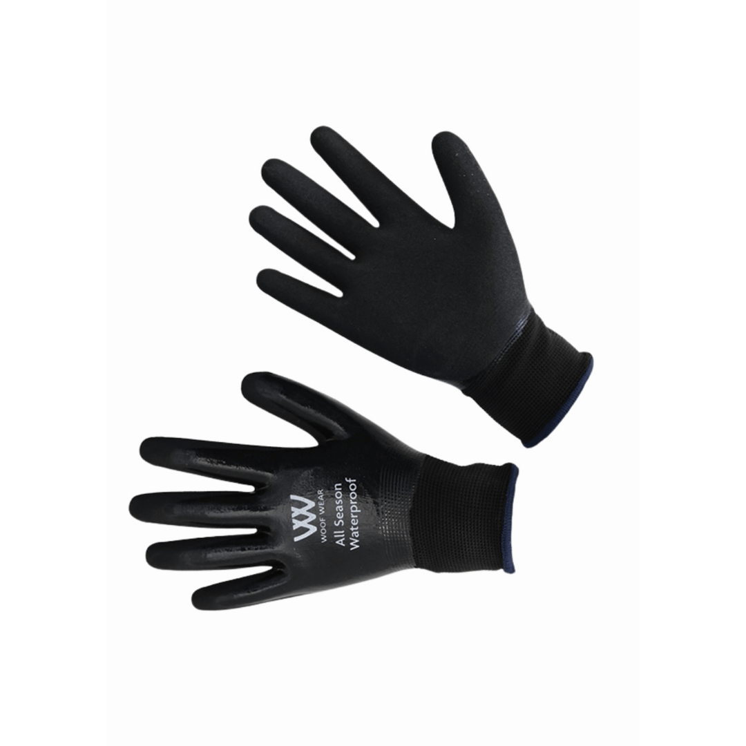 Woof Wear All Season Yard Glove – Black is the versatile, waterproof work glove that grooms, yard managers and riders reach for day after day. A robust coating creates a flexible, near‑seamless barrier against water, oils and dirt, so you can lift, pull, push and sweep without losing grip—even when surfaces are wet. The close fit preserves dexterity for small jobs like fastening halters, adjusting rug straps and clipping carabiners, yet the construction is tough enough for heavier tasks such as wheeling barrows, stacking hay or hauling hoses.